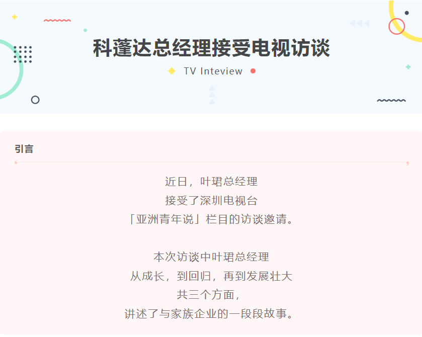 科蓬達葉珺總經(jīng)理接受「亞洲青年說」欄目采訪