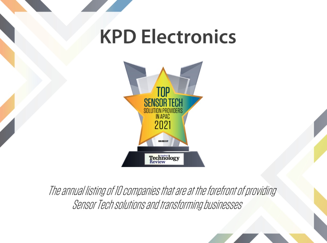 「Applied Technology Review」評選的年度十大亞太區(qū)傳感器供應(yīng)商獎